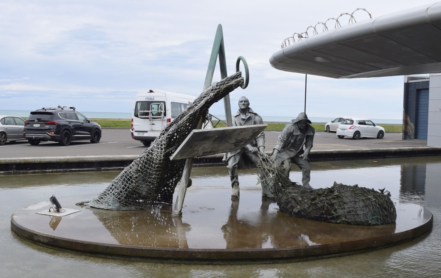 Set in a pool at the northern end of the National Aquarium of New Zealand, Marine Parade, artist Alan Strathern's sculpture, dedicated to the commercial fishermen who toil at sea, came out of a curious financial story.