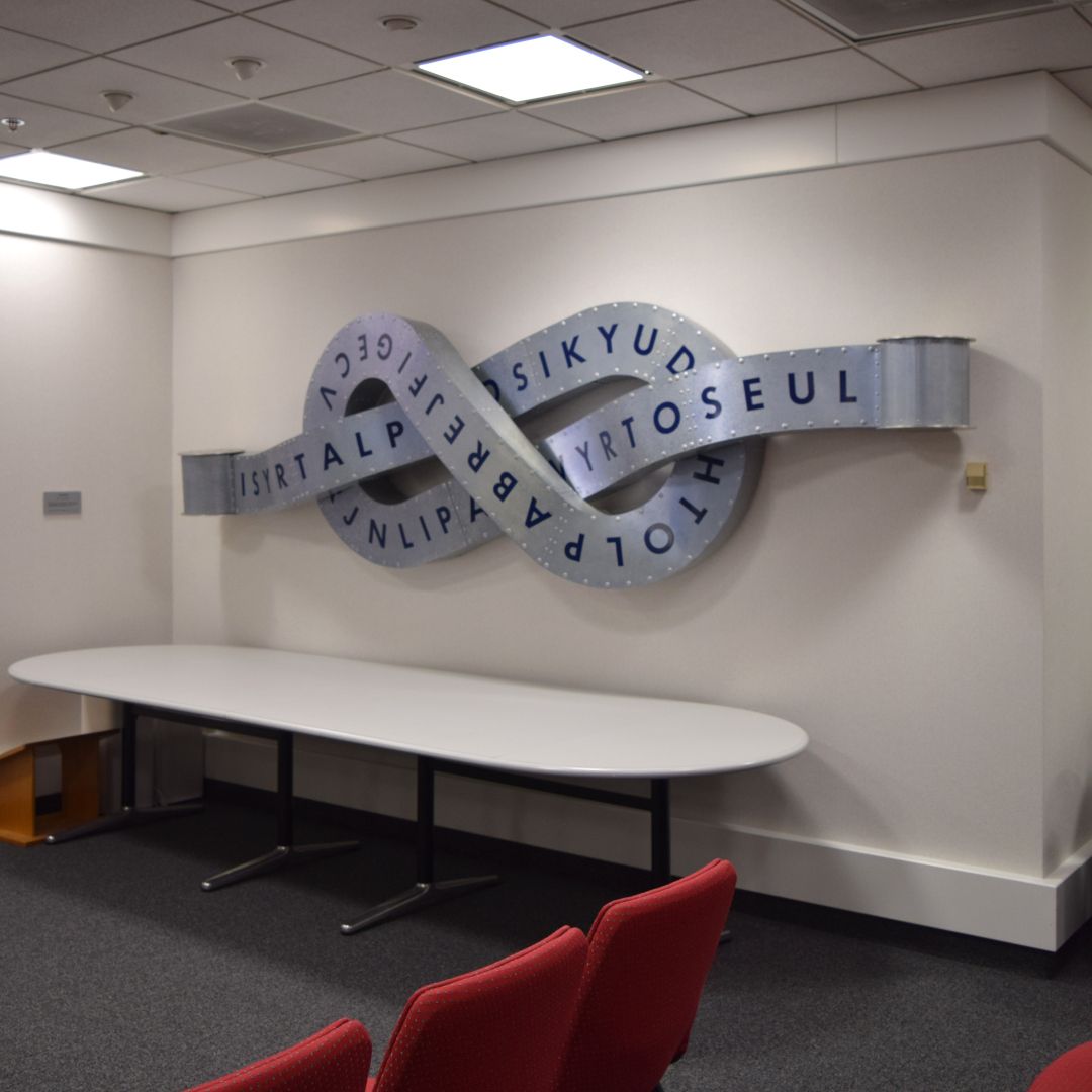 “Alphabeti is viewer-dependent: meaning is not inherent in the work. What the sculpture means depends on who looks at it. Language is a central mechanism of the justice system.”