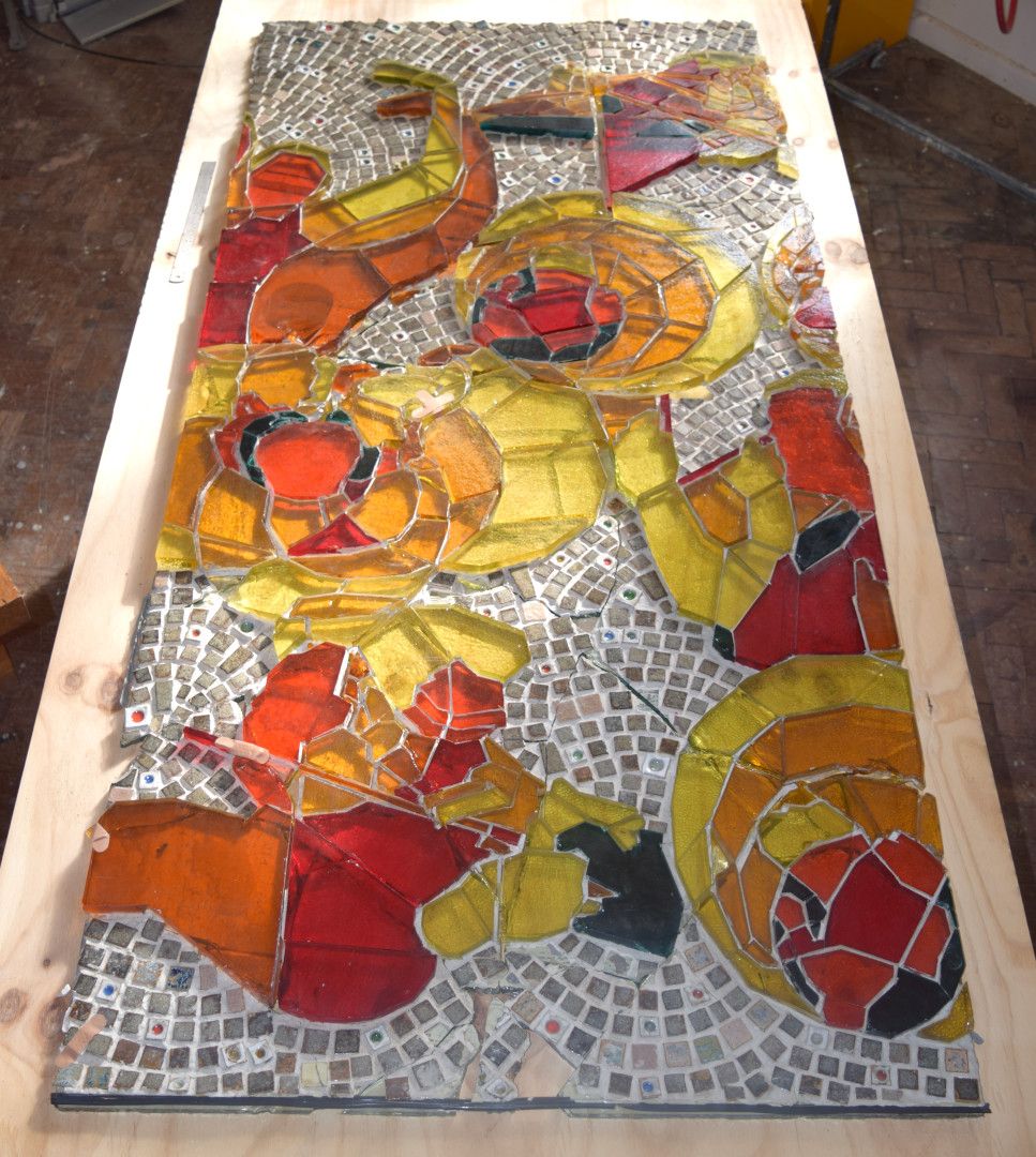 At some point the mural was relocated to another wall in the main entrance foyer. In 2022 it needed to be removed from the tower due to the building’s redevelopment, and would have been destined for landfill however staff at the neighbouring Avalon Studios stepped in to save it. Unfortunately, the weight of the mural took the deinstallation team by surprise and one panel was dropped and broken in the process.