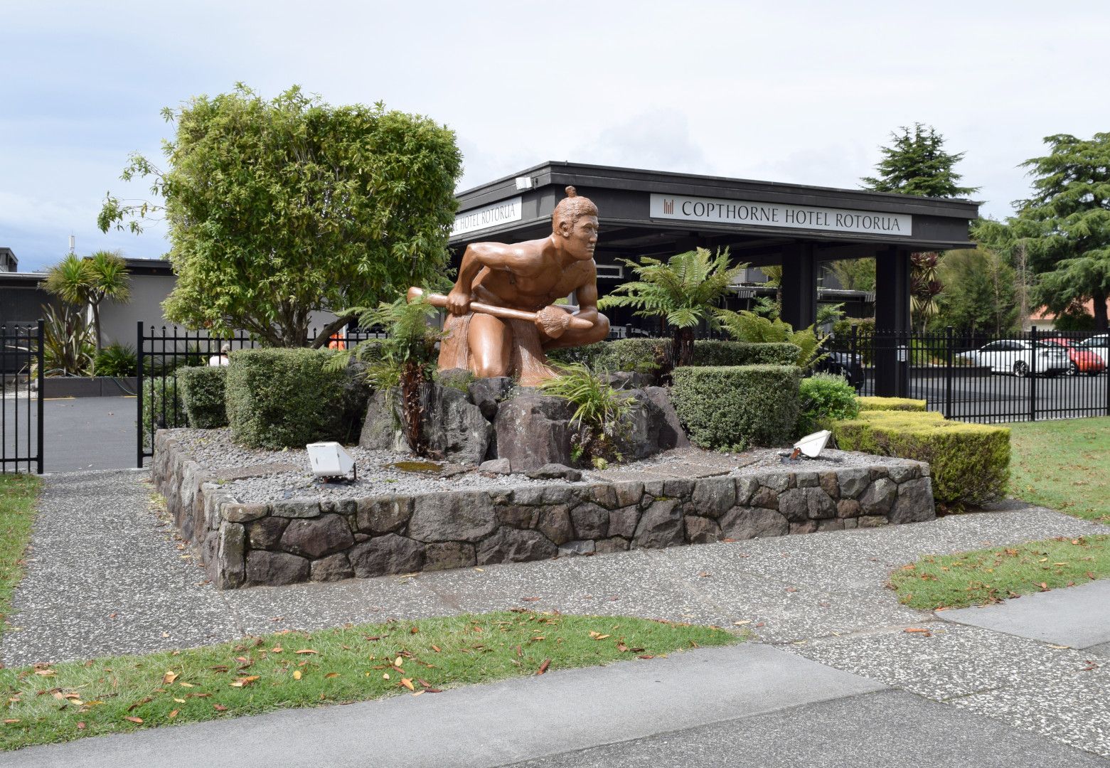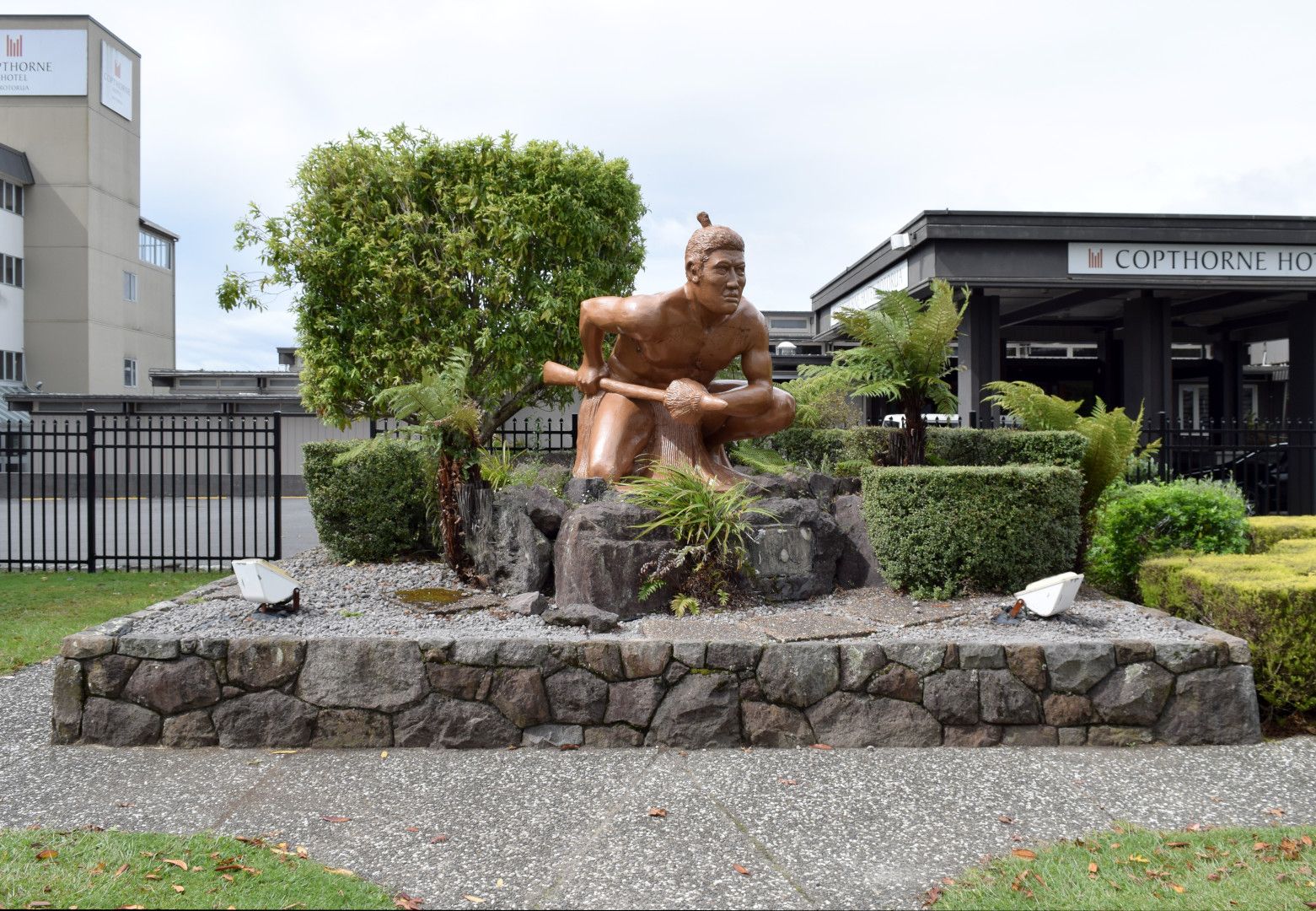 This work was gifted to the people of Rotorua by Sir Henry Kelliher, Managing Director of DB breweries, in 1964. At that time the Rotorua Hotel was a Dominion Breweries establishment.