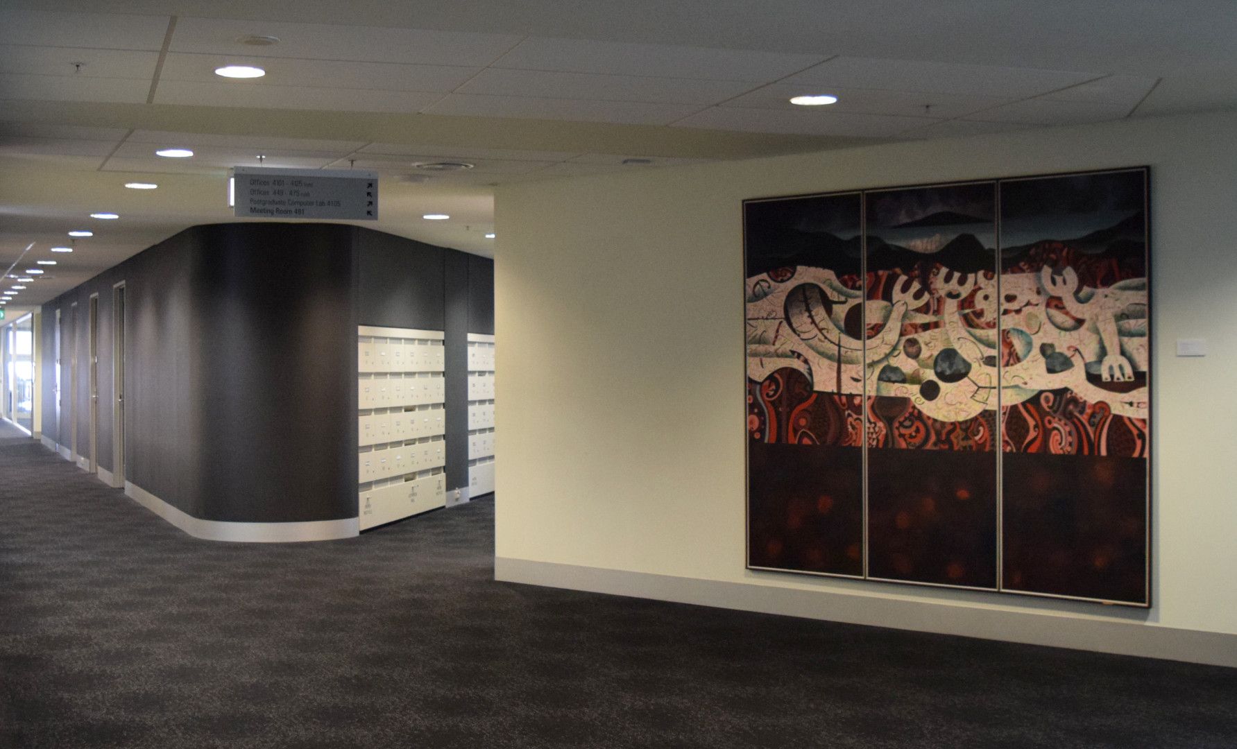 - Corridor of Level 4, Owen G Glenn Building (260), City Campus, The University of Auckland, Tāmaki Makaurau Auckland.