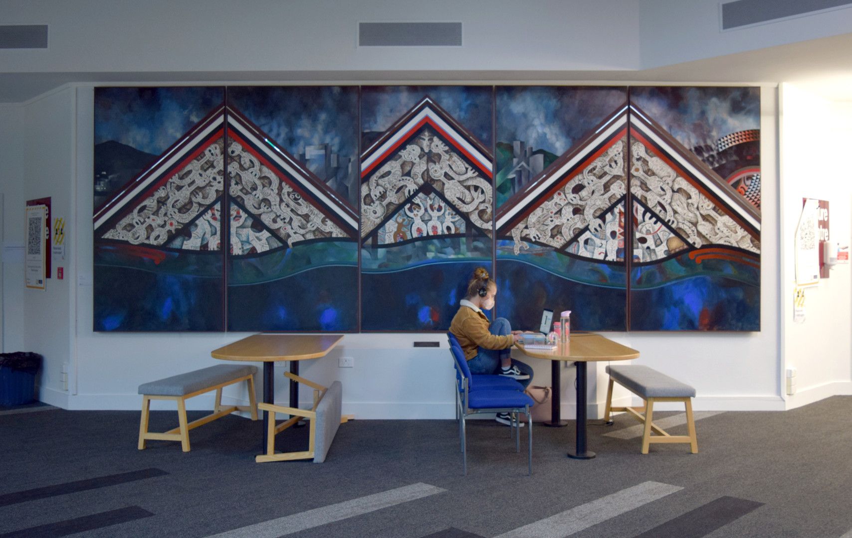 Buck Nin (Ngāti Raukawa, Ngāti Toa), ‘Patupairehe’(1992), MSB – Waikato Management School (Room 1.30), University of Waikato, Kirikiriroa Hamilton
