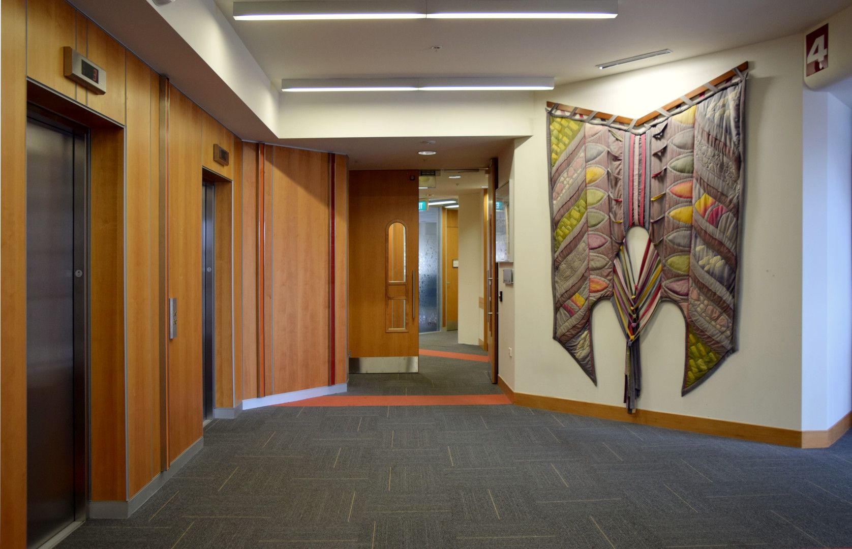 One of a number of works commissioned by Pat Hanly for each of the level foyers when Building 206 (originally Arts 1 Building) was built in 1984.