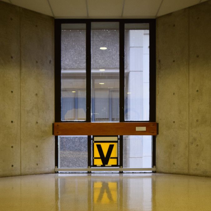 Colin McCahon, 'Roman Numerals Series' (detail) (1975), Level 1, Building 505, Grafton Campus, University of Auckland.