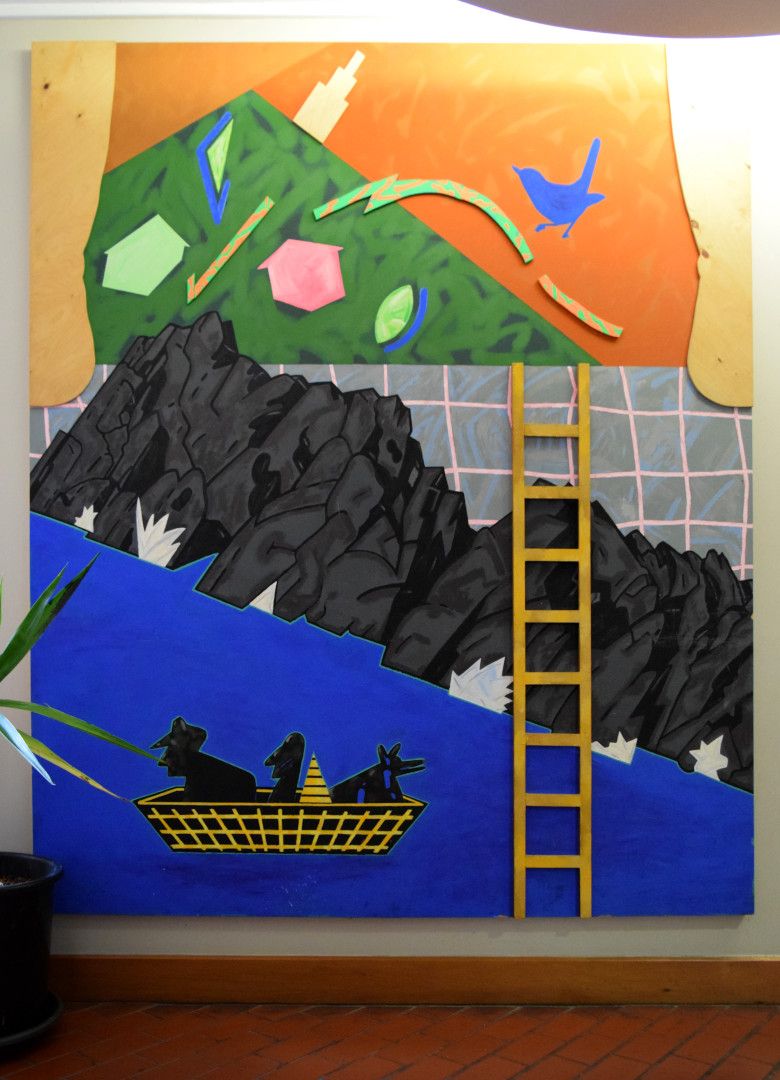 Acrylic on plywood with painted editions of ply fixed to the surface.