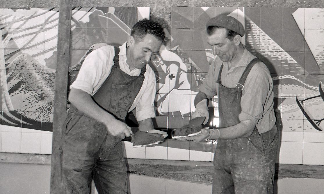 Following the end of World War II Masterton resolved to create a series of ‘Living Memorial’ projects including the construction of a large community hall or stadium. Funding was approved in March 1960 and the project’s architects, Daniell & Wevers, recommended a decorative feature on the southern wall of the War Memorial Stadium’s Hall of Memories. E. Mervyn Taylor got the job, proposing a glass mosaic mural made from tiles sourced by Smith & Smith from an Italian factory.