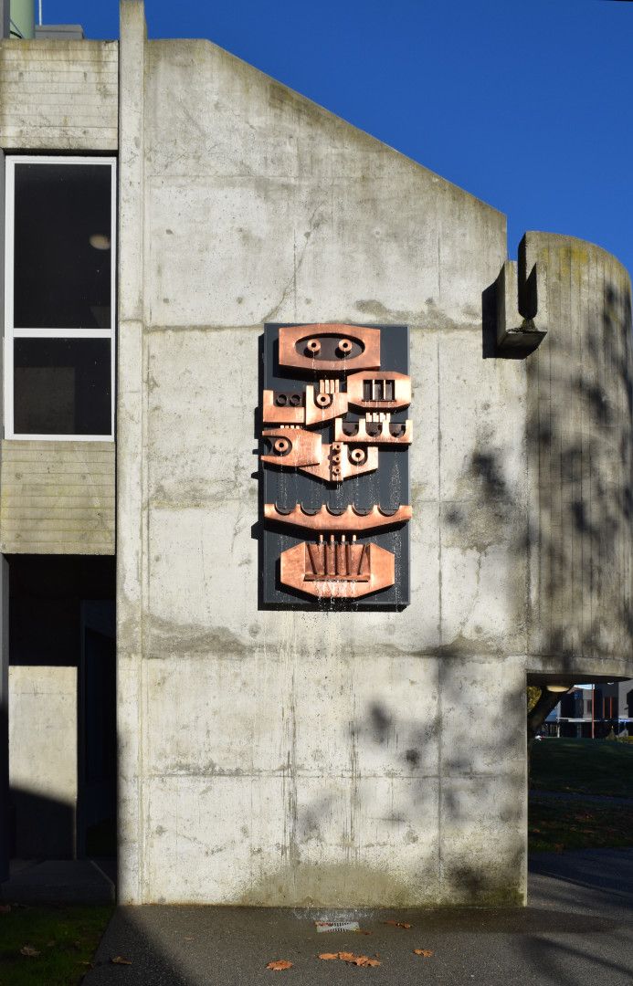 Fred Graham’s interest in carving and sculpture was sparked while he was an art lecturer at Palmerston North Teachers Training College between 1957 and 1962. 'Falling Water' was commissioned by friends Betty and Bill Clarke for the Modernist-inspired Alpha Motor Inn, built on the corner of Victoria Avenue and Broadway in Palmerston North in 1970. It was displayed there until 2015, when the motel was sold and partly demolished. The work was bought for the city in 2017 and restored in 2019 before being installed here in 2020, 50 years after it was first created.”