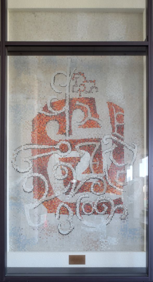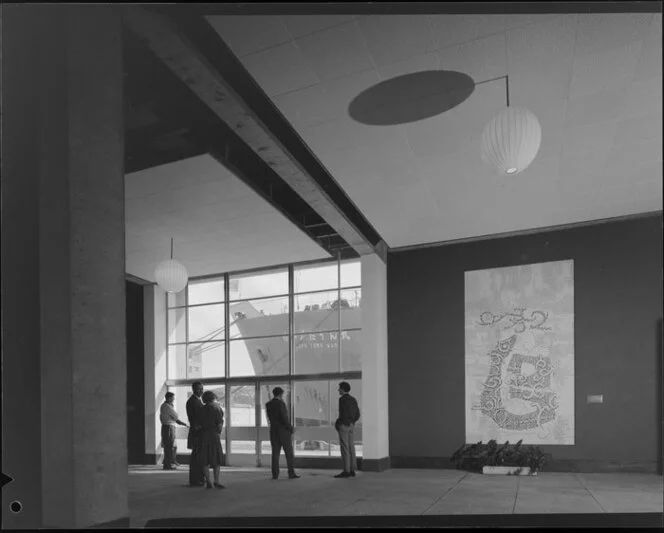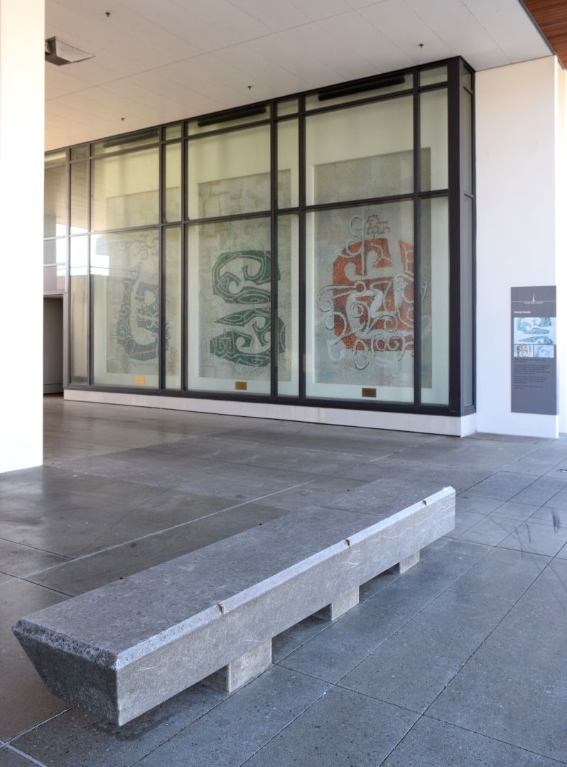 “The form and the pattern of the mosaic murals are a development in general terms of early Māori motifs and represent a stone anchor, tiki, canoe prow and Maui’s fishhook.