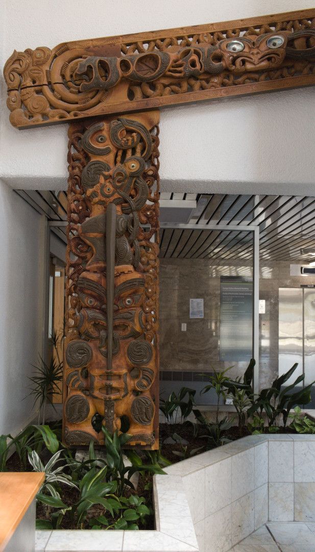 The 4-metre high kauri taonga, crafted by master carver George Edwards (Kāi Tahu, Ngāati Irakehu), signifies the acceptance of Lincoln University as a suitable Whare Wānaka (school for the education of young Māori), and to welcome these young Māori to Lincoln University, along with all other tauira (students), staff and visitors."