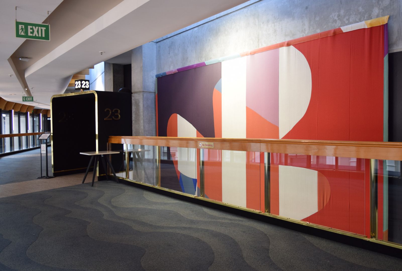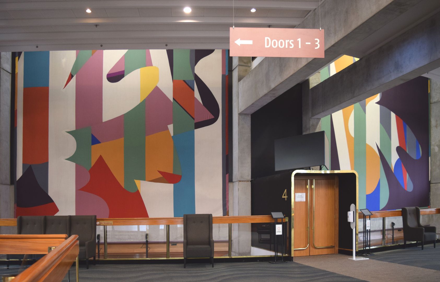 - Between each door to the main auditorium, Levels 1-2, Renouf Foyer, Michael Fowler Centre, CBD, Te Whanganui-a-Tara Wellington