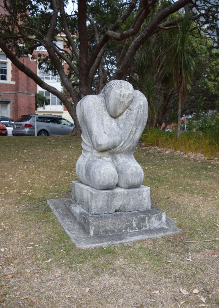 The sculpture was created as part of a fortnight-long Oamaru stone sculpture symposium that took place at Frank Kitts Park in late-Jan to early-Feb, 1995, a first for Wellington. The event involved 40 sculptors. Denis Adam purchased the work at the symposium, and donated it to Victoria University: the first sculpture the Adams’ donated directly to the city, commenting “I’ve done well out of the community in New Zealand, and this is one way of putting something back into it.”