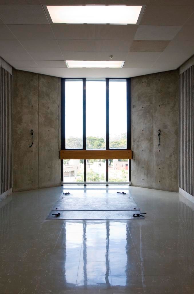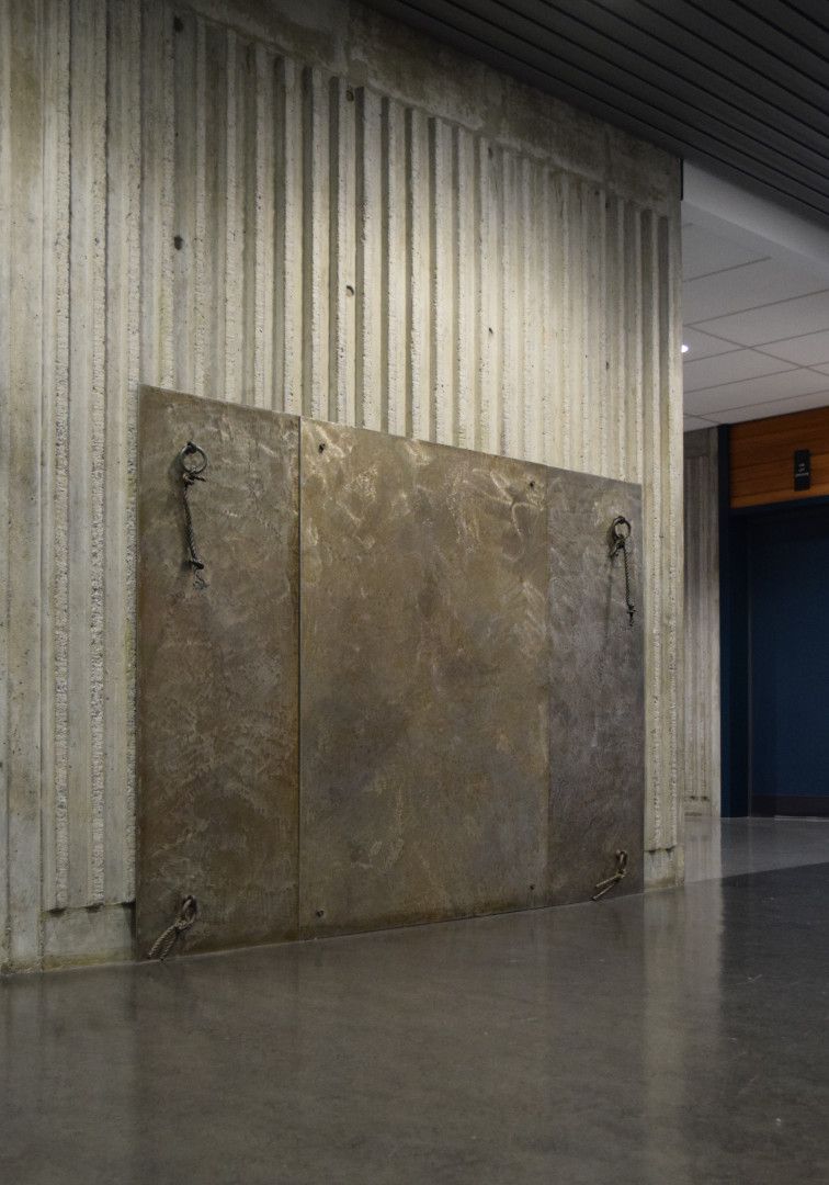 Steel and cast bronze. Was originally installed on the floor & walls.