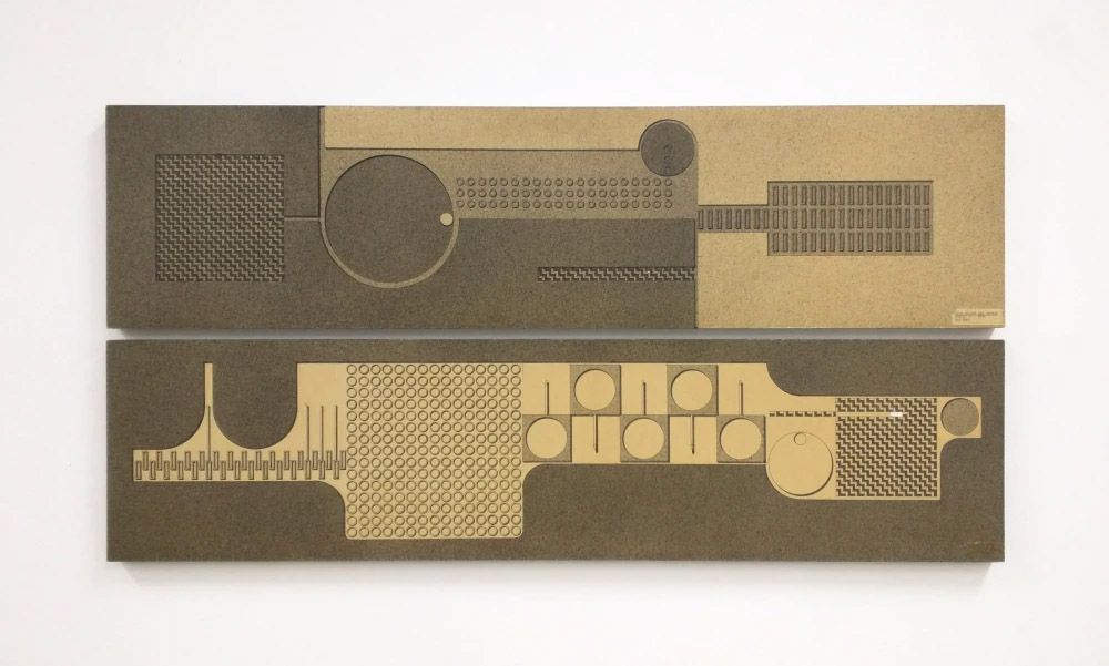 Originally installed in the Thames branch of the National Bank, a news article in the Thames & Peninsula Gazette on 24 August 1976 states that the mural had been relocated to Morrinsville. A photograph of the Morrinsville National Bank branch from 1988 confirms this. A maquette of the mural gives a good sense of the overall design, suggesting the work consisted of two panels.