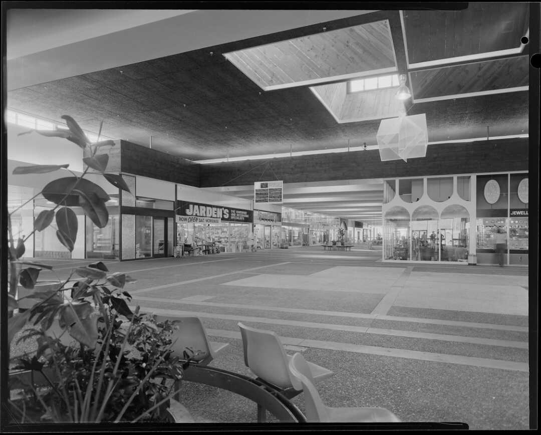 'Interior of Wainuiomata Mall, Lower Hutt' by K E Niven and Co. Alexander Turnbull Library, Wellington, New Zealand. (Ref: 1/2-224428-F)
