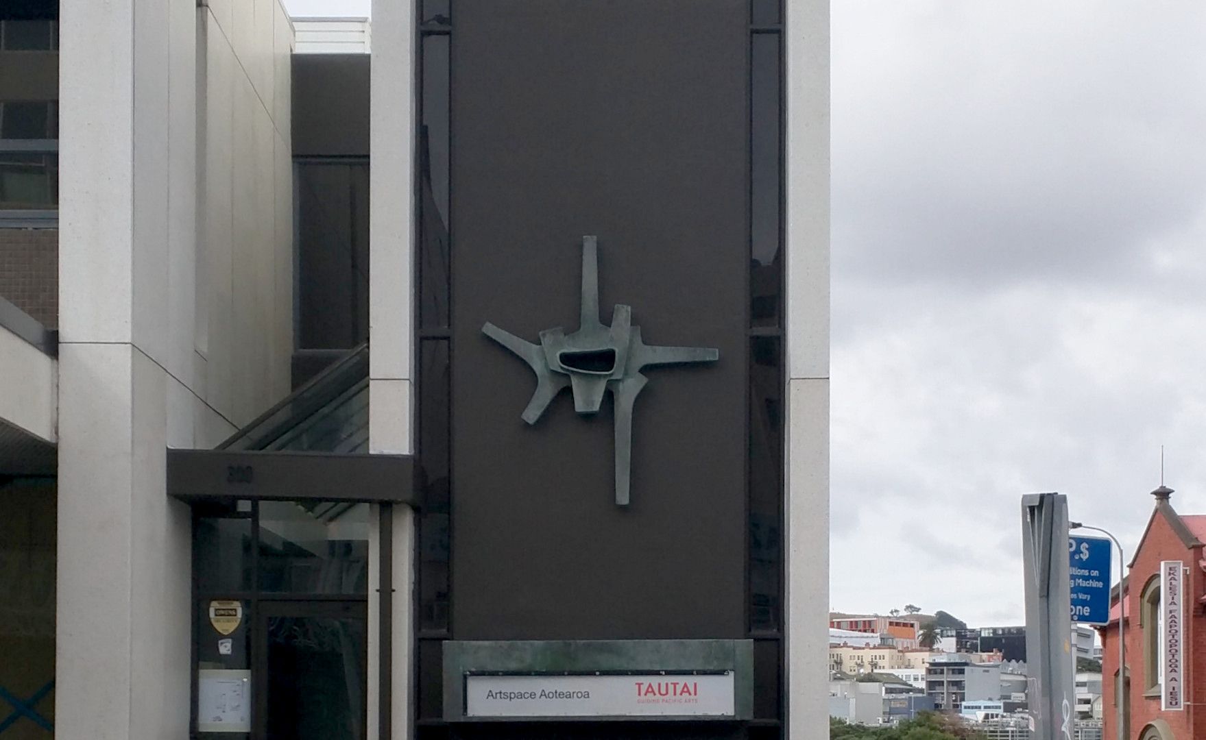 The Newton Post Office was commissioned by the Ministry of Works and designed by architects Mark-Brown Fairhead and Sang. Wellington-based artist Guy Ngan created 'Star', to adorn its façade, and it has remained in situ since 1973. It exists as companion piece to Ngan’s Newton Post Office Mural (1973), which is now in the collection of Auckland Art Gallery Toi o Tāmaki.