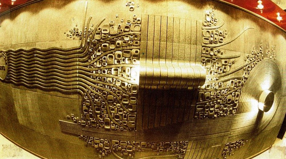 Ngan’s mural was positioned in the building’s street level public area, filling an entire curtain wall. It was lit from above by spotlights in orange plastic dome fittings and skirted at its base by heavy-duty black plastic; the two lights built into the surface added focal illumination. The mural was decommissioned when the building was remodeled following the Post Office’s Rogernomic restructuring and the subsequent subleasing of parts of the building in the late 1980s. It remained in basement storage for a decade, only resurfacing in 1999 when I included it in my Artspace show, Nostalgia for the Future. Artspace is situated on the first floor of the Post Office building, so it seemed a highly appropriate context for a work designed in conjunction with the building’s construction.