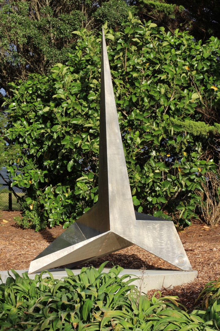 Ngan's design was welded from stainless steel sheet by Chubb Lock and Safe in Porirua. It was installed in October 1979, ahead of the official opening of the Aotea Lagoon in March 1980 . At the unveiling, Ngan said "I've had many moments of pleasure working on this. For its size it took the shortest time of any I have done. I can remember several smaller projects that took much longer but none that gave me as much pleasure as this one." (Kapi-Mana News, 11 March 1980, p. 3).