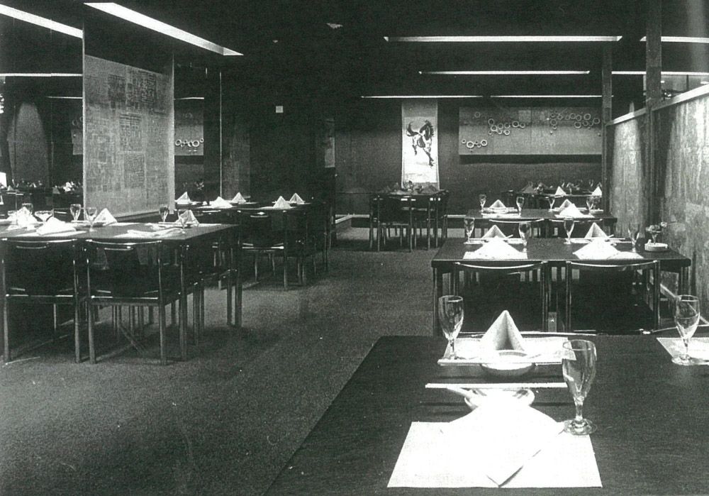 Sold by the original owner to a long-serving employee, the décor of the restaurant is still largely original. The paint & bamboo diptych was removed and remains in the possession of the family of the original owner.