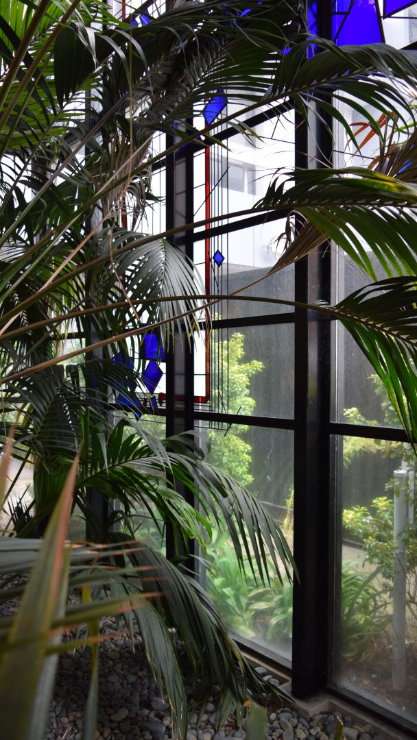 The blue and red glass was mouth-blown in huge bubbles from red hot furnaces then flattened into sheets with the resulting irregularities of thickness giving gentle shadings of colour, and the small trapped air bubbles, life and movement.