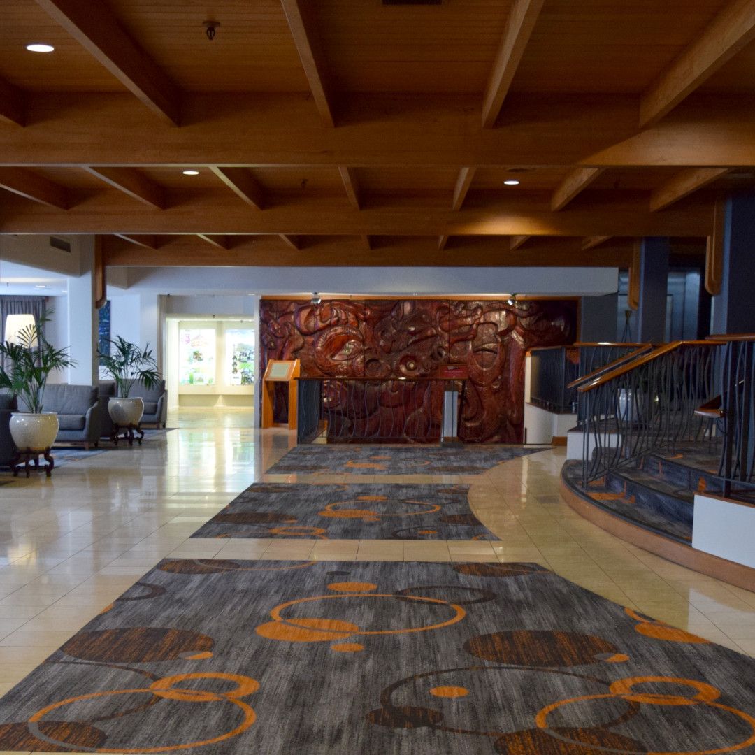 - Foyer stairwell of Millennium Hotel, 1270 Hinemaru Street, Ohinemutu, Rotorua