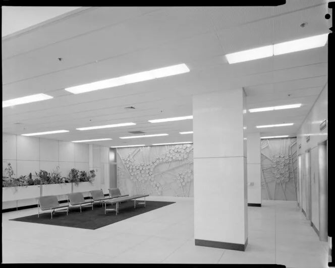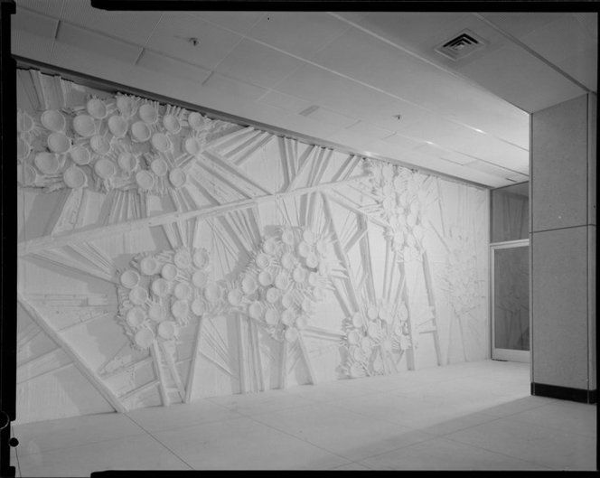 Imperial Chemical Industries (ICI), ICI House, Wellington, mural. Winder, Duncan, 1919-1970: Architectural photographs. Ref: DW-1285-F. Alexander Turnbull Library, Wellington, New Zealand. /records/22831121