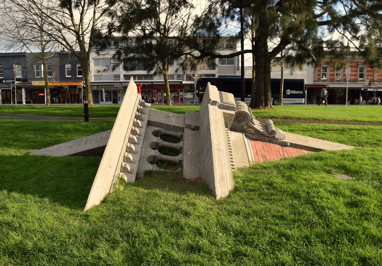 'DOO (Sculpture Three)' is based on the building that stood on the upper west corner of Cook & Hobson Sts from 1880s - 1983.