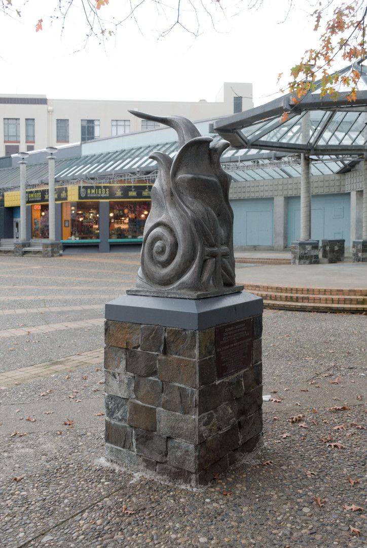 This work was the winning entry of a competition run by the Invercargill City Council. The plaque also states that the work was: "Unveiled on the 3rd August 1990 by Her Worship The Mayor Eve Poole QSO. The help fo the following organisations in contributing towards this piece of sculpture is gratefully acknowledged: Southland Community Arts Council; COMALCO New Zealand; New Zealand Aluminium Smelters Ltd; Invercargill City Council; Butlers Foundry Ltd; Southland Polytechnic; Southland Regional Arts Council."