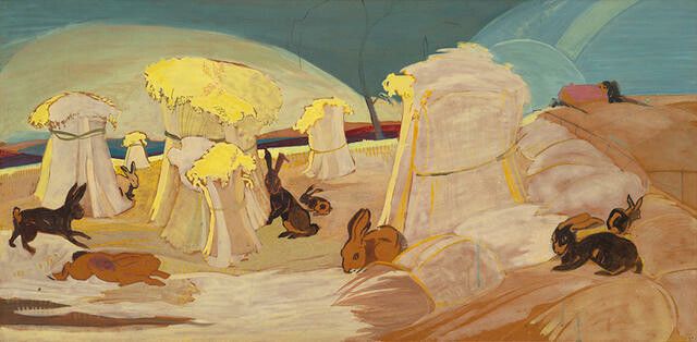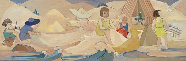 Louise Henderson, ‘Nursery Panels’ (panel 7, ‘Dunes’) (1938), Nursery School, Rangiora High School, Rangiora