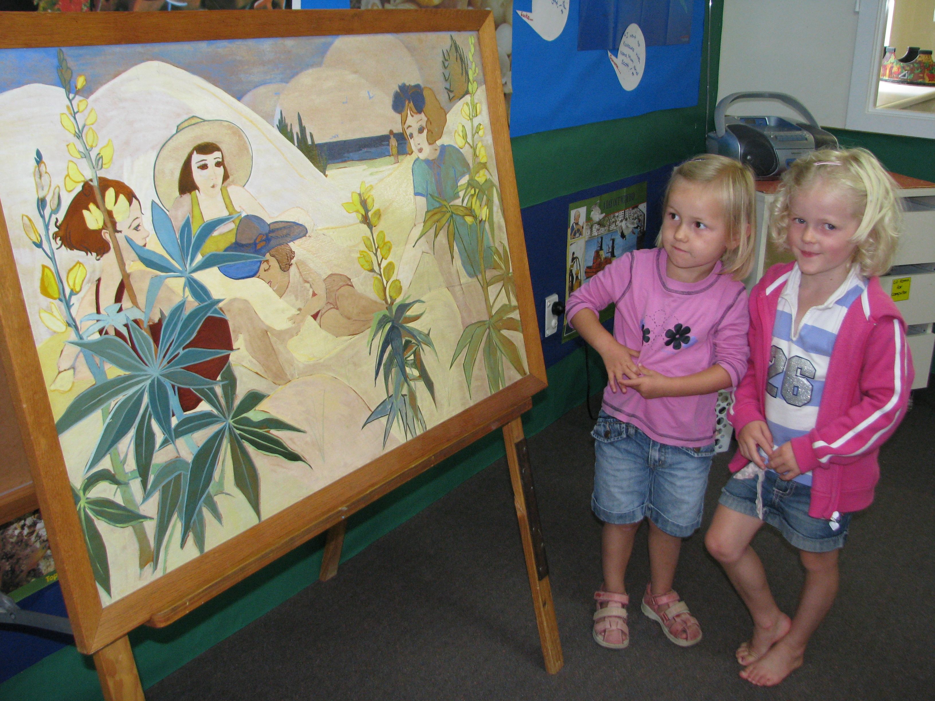 In 1938 Dame Louise Henderson painted 8 panels for the opening of the Rangiora High School Nursery School depicting rural scenes inspired by North Canterbury life. At the time she taught art and textiles for a half-day each week at the high school.