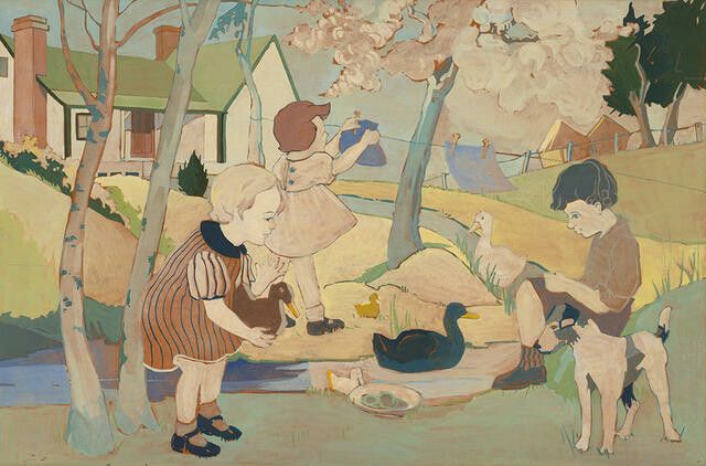In 1994 the nursery underwent renovations and the panels were found in storage. When rediscovered, the identity of the artist was initially unknown, with the initials 'L.H.' the only clue as to their identity. Judith Hoult, the Education Officer of the then Robert McDougall Art Gallery, undertook research and was able to confirm they were done by Louise Henderson.