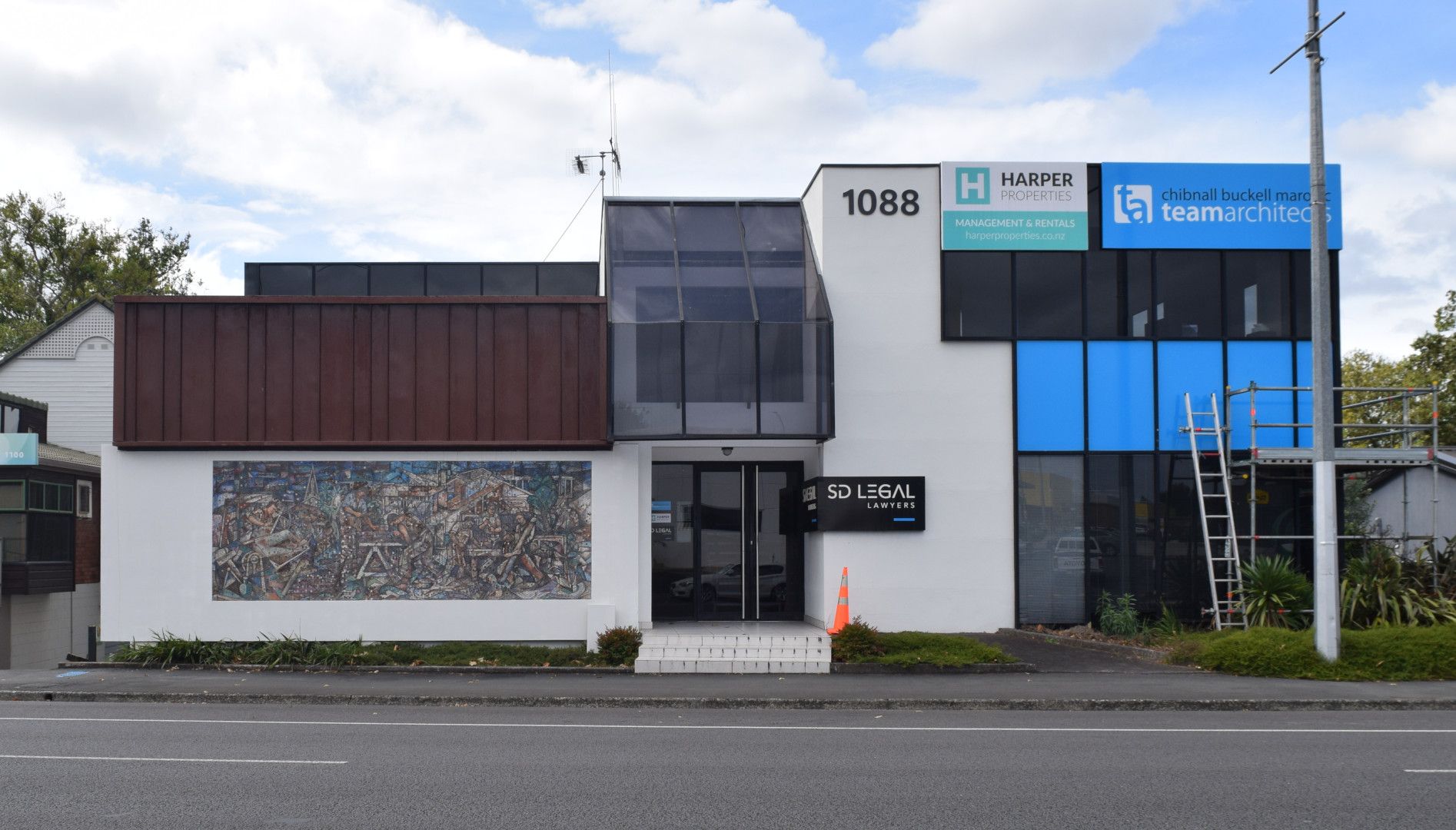 - Street facing façade of the former office of Angus, Flood and Griffiths (1088 Victoria Street), CBD, Kirikiriroa Hamilton
