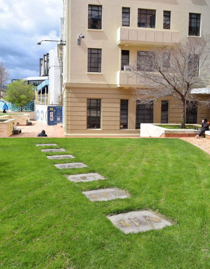 - In the raised garden in front of the Council Administration Building, Te Ngākau Civic Square, CBD, Te Whanganui-a-Tara Wellington