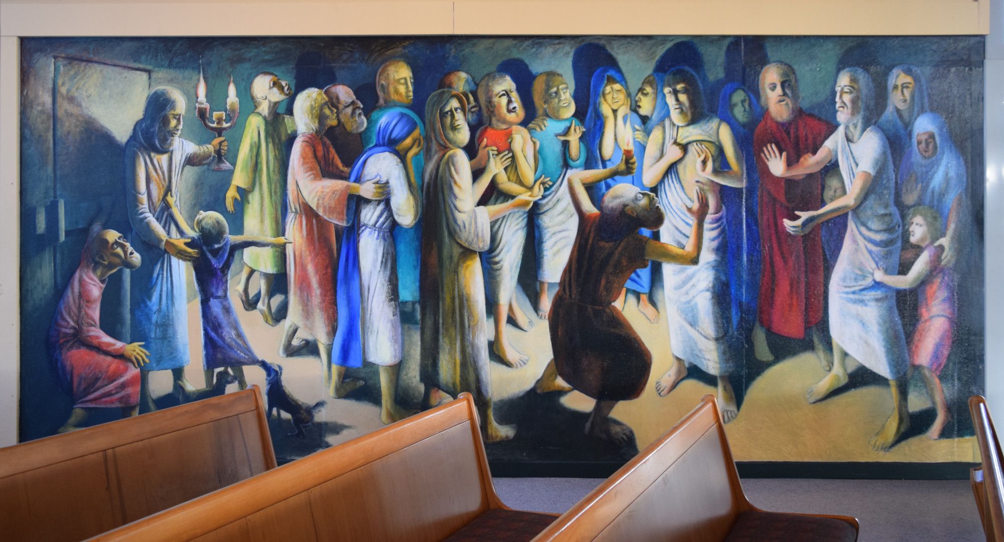 This work was to become the first of two murals in St Josephs, six years later it was joined by 'The Baptism of Christ' on the other wall at the back of the church – both are about 20’ long x 12’ high.