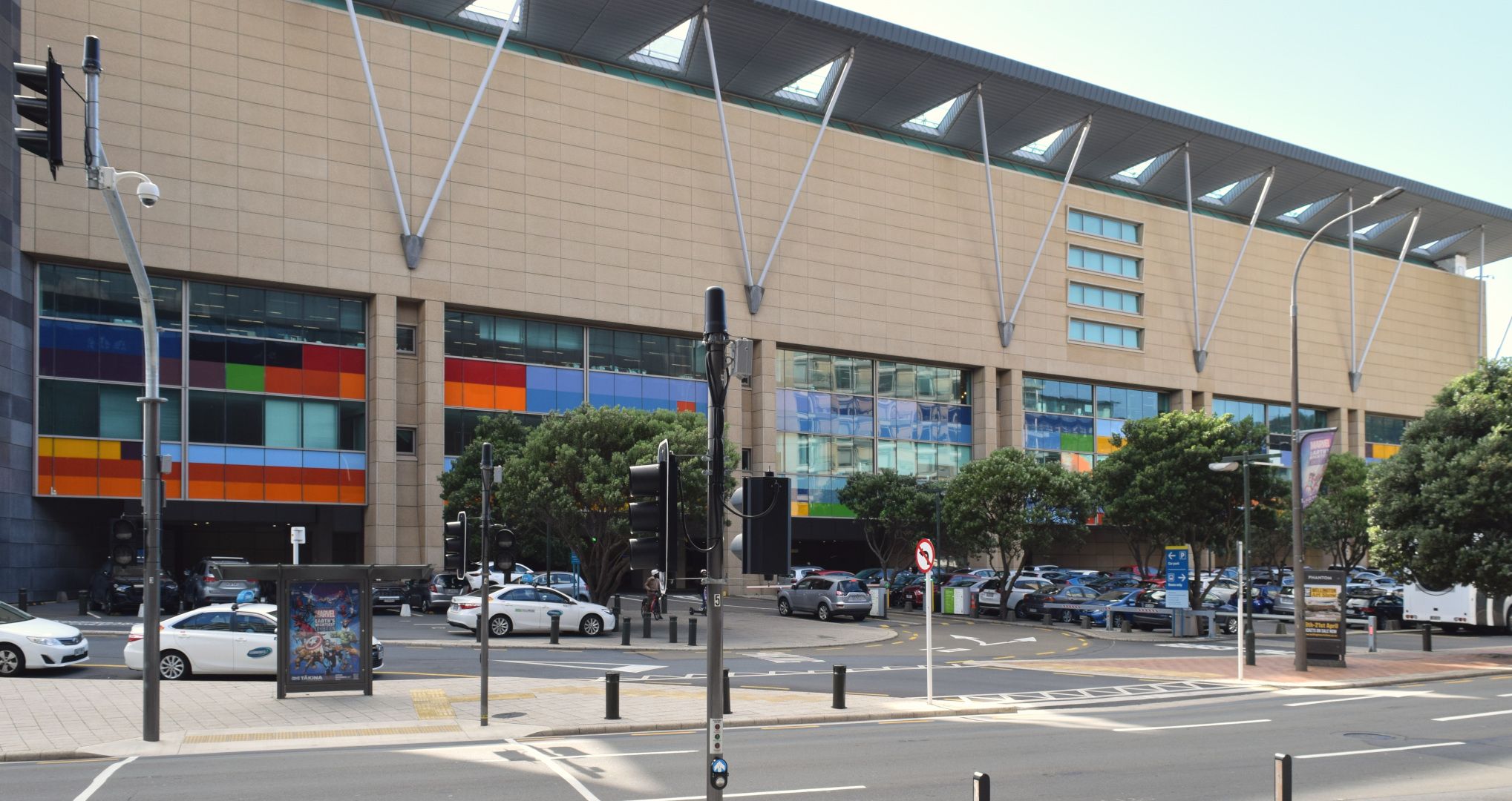 ‘The Design was deemed necessary by Pete Bossley, Jasmax Architects, to conceal structural elements of the building when viewed from Cable Street.” Lewis Mrkusich.