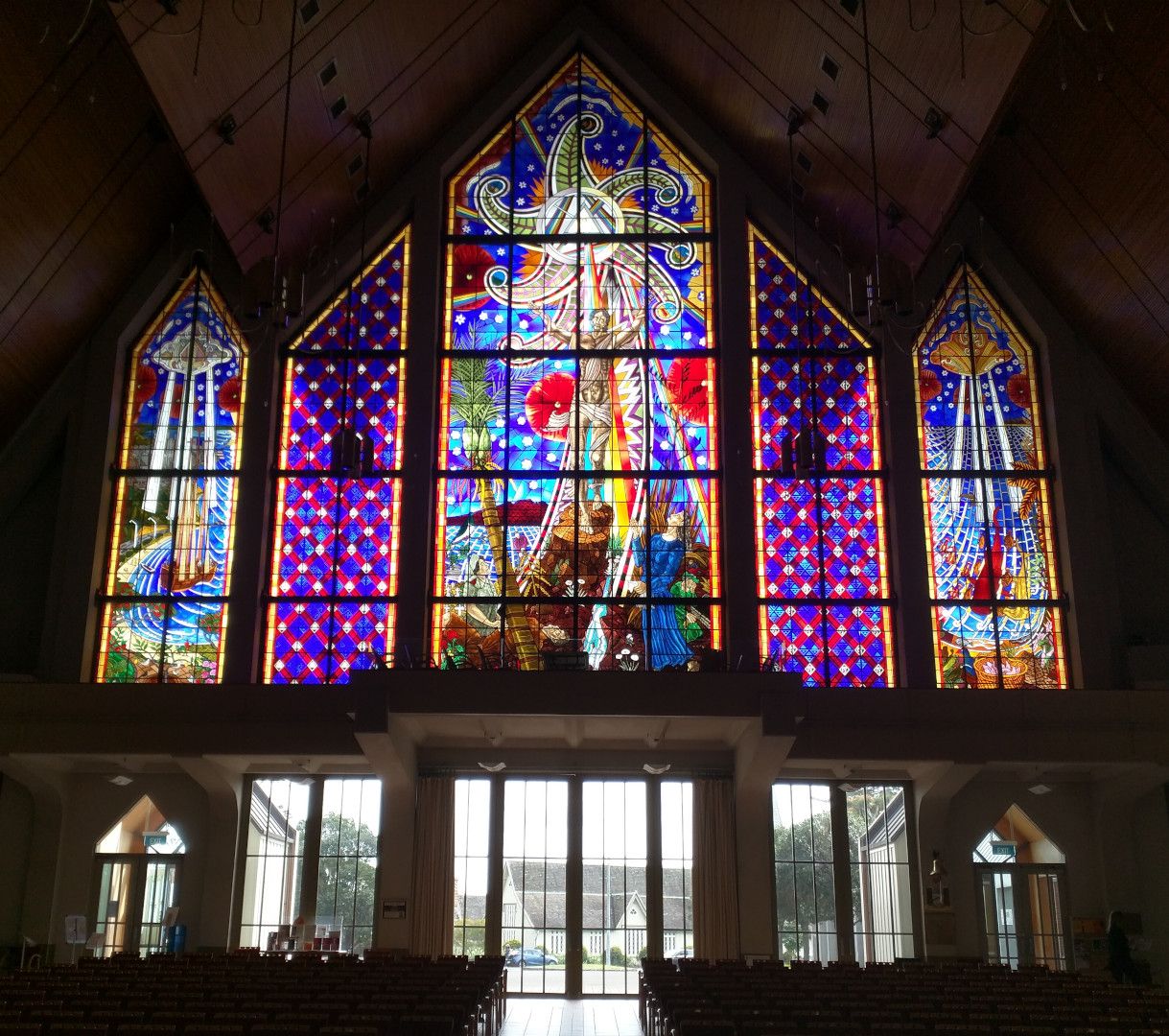 Nigel Brown with Glassworks Studio, ‘The Creation Window’ (1999), Holy Trinity Cathedral, Parnell, Tāmaki Makaurau Auckland