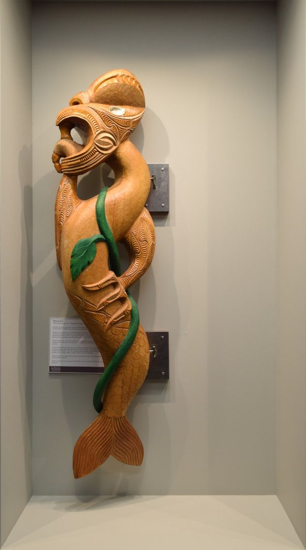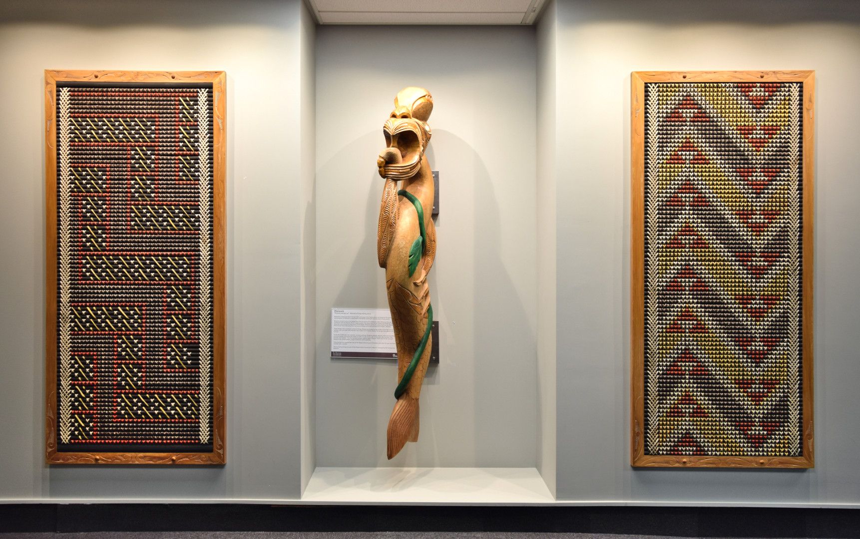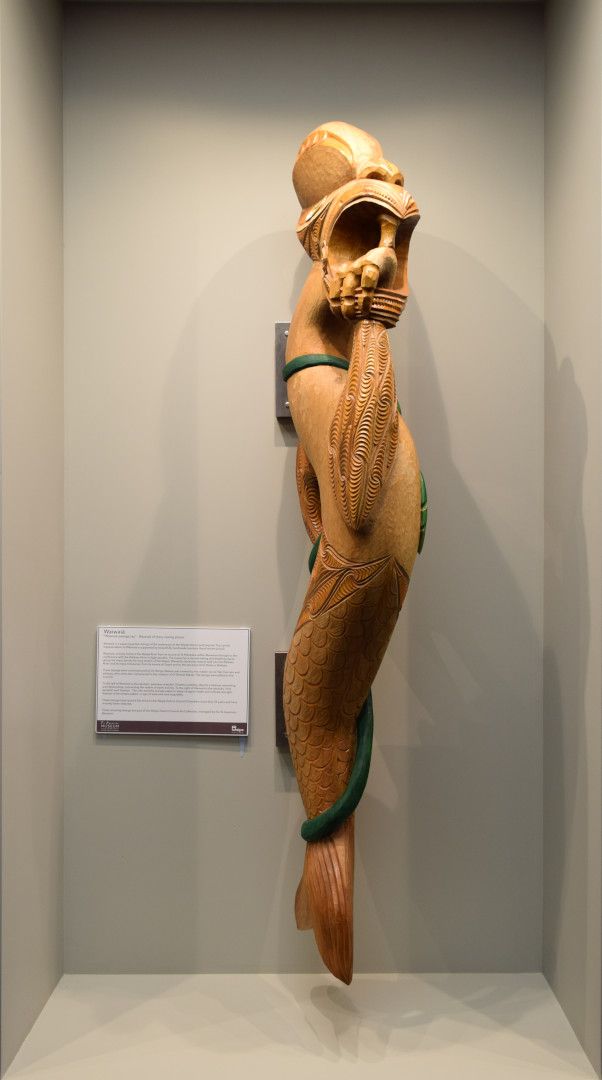 Waiwaiā is a tupuna (guardian being) of the waterways of the Waipā district and beyond. The carved representation of Waiwaiā is supported by beautifully handmade tukutuku (hand woven panel).