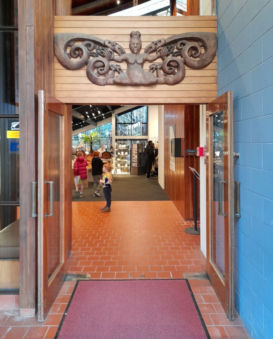 - Pare (lintel) over the entrance to Whare Hoko Taong me Te Whare Tapere Gift Shop and Theartre (former Waitangi National Trust Visitor Centre), Paihia, Te Tai Tokerau Northland