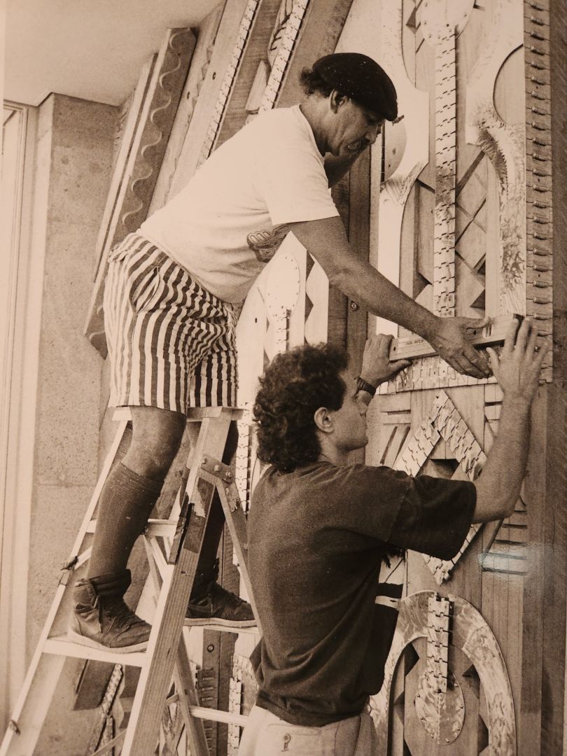 Matchitt's son Maia helped his father with the piece, and as a result has his name carved into the mural.