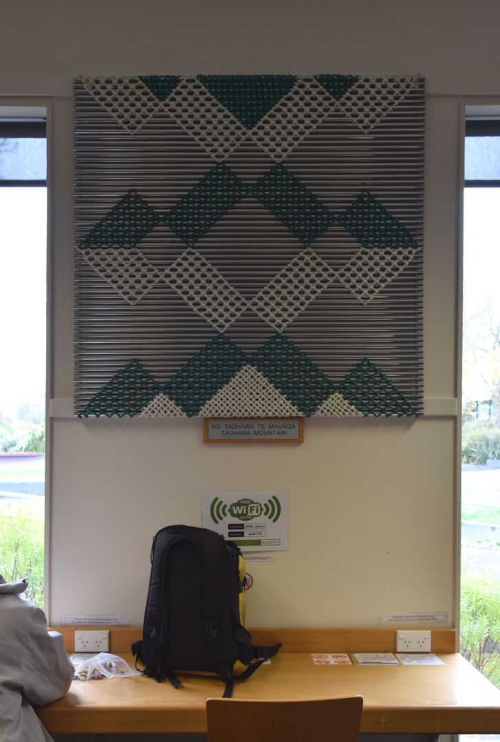 Traditional tukutuku and taniko patterns were adapted by Queenie Te Maku u Wano and Ira Karitiana, with the assistance of fabric artist Fientje Allis-van Rossum, into designs that represent Taupō and its people.