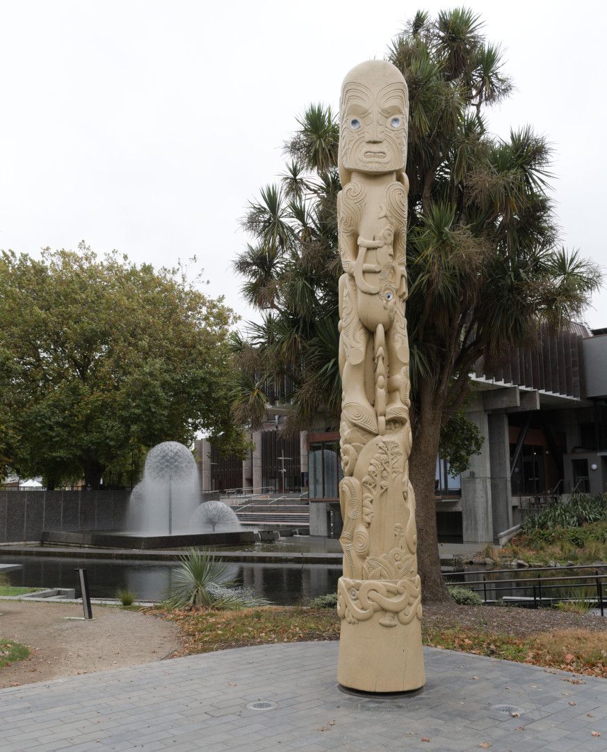 Riki Manuel (Ngāti Porou), ‘He poupou tohu ahi-ka o Ngāi Tahu: A mark of the long burning fires of Ngāi Tahu’ (1994), Victoria Square, CBD, Ōtautahi Christchurch