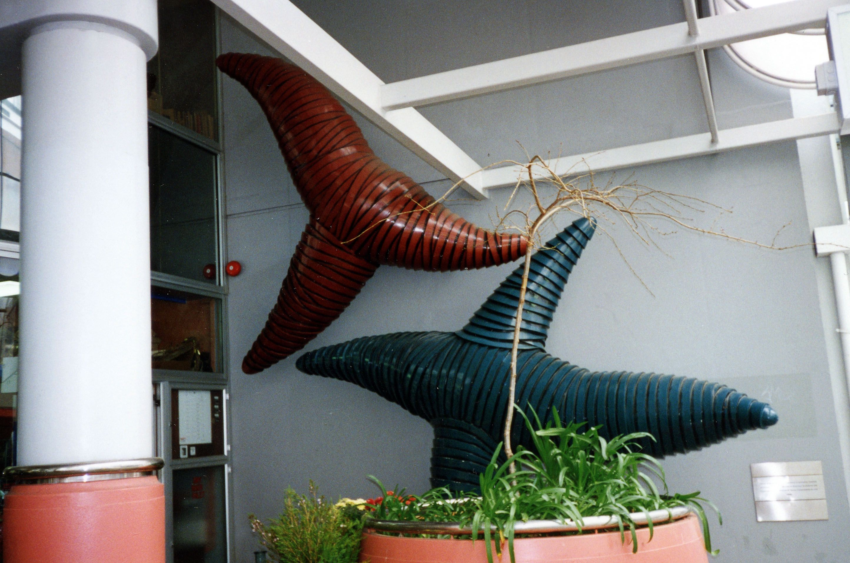 Originally sited under the entry canopy of the National Insurance building on Featherston Street, the placement of the two giant starfish was site specific: marking the Wellington Harbour shoreline prior to reclamation.
