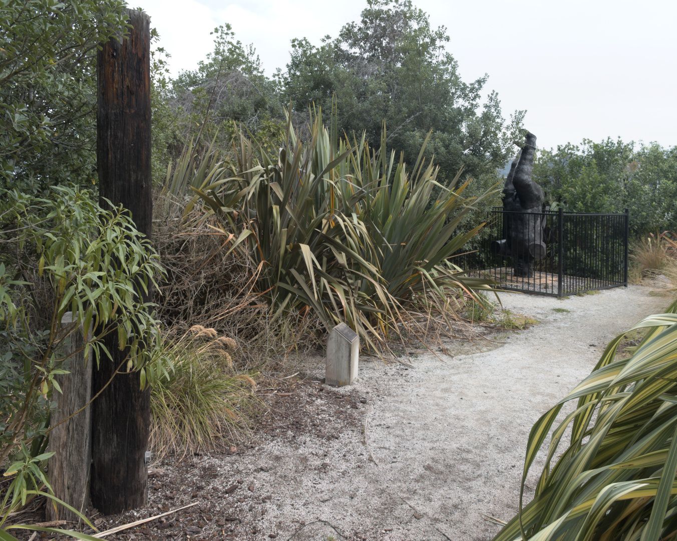 Shona Rapira Davies (Ngātiwai), ‘They do cut down the poles that hold up the sky’ (1989), Hotere Garden Oputae, Port Chalmers, Ōtepoti Dunedin