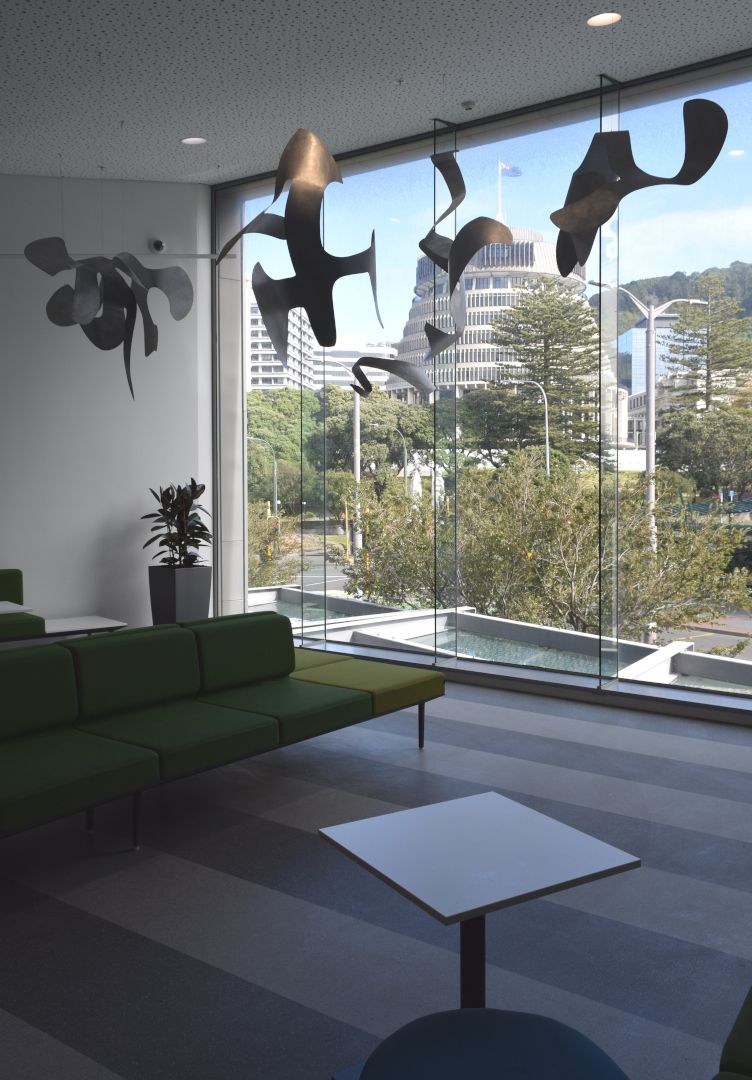- Mezzanine, Rutherford House, Te Herenga Waka—Victoria University of Wellington Pipitea Campus, Bunny Street, Te Whanganui-a Tara Wellington