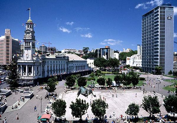 - Photograph by Gil Hanly of 'Children climbing on Terry Stringer's fountain sculpture, Aotea Square' (1985) - Auckland War Memorial Museum - Online Collection.