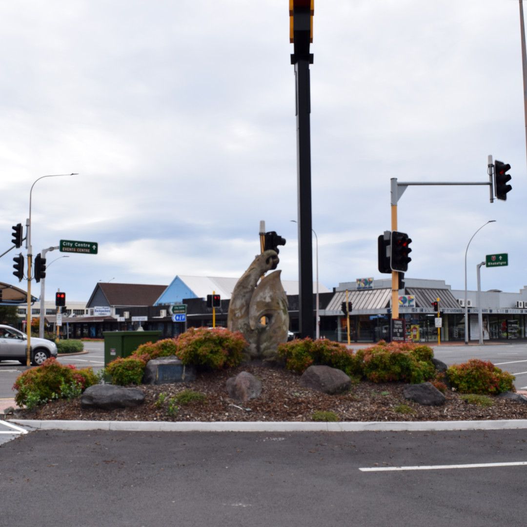 Tuti Tukaokao (Ngāti Ranginui, Te Arawa), ‘Te Matau o Maui | The Fish Hook of Maui’ (1997), Cnr Amohau and Fenton Streets, CBD, Rotorua